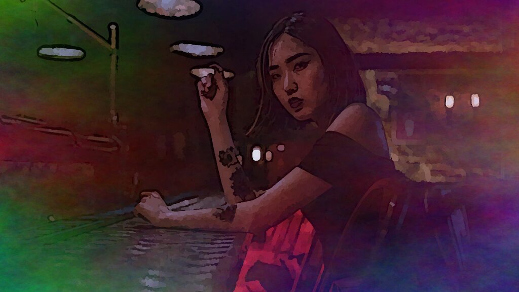 "Who the fuck are you people?," a bitchy, feminine voice asks from the corner of the bar proper. Hitomi has been plugged into the scene long enough to recognize Amy Patel at a glance. Even in casual-wear, Hitomi can see why the rumors are that Amy is only a few years from running the Patel empire on her own. Or, at least, was. Amy takes a long drag off her cigarette while staring down Hitomi in turn. "At least your cute. You want to sit by me while they fight it out?"
