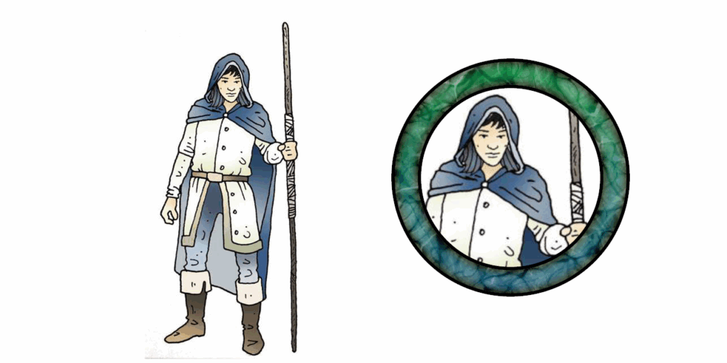 Marryck is a rogue. However, and though they will deny it, they feel a special kinship with the trio. Capable of some minor magic [literally, in game terms] the overall focus is on long distance attacks and being stealthy. They are playful but untrusting [excepting their newfound family].