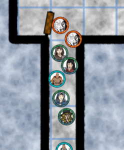I just drug the tokens in randomly but I'll say this is the way it stays. Leo will more or less hang back in the middle. Tholan will push in to try and get in by Marryck. Jort will hang around. Pholex will back up a bit.
